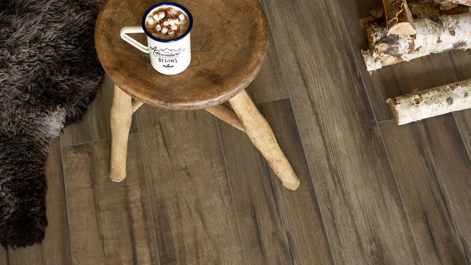 Mönstren går från mörkt till ljust och har naturtrogna sten- och trämönster.